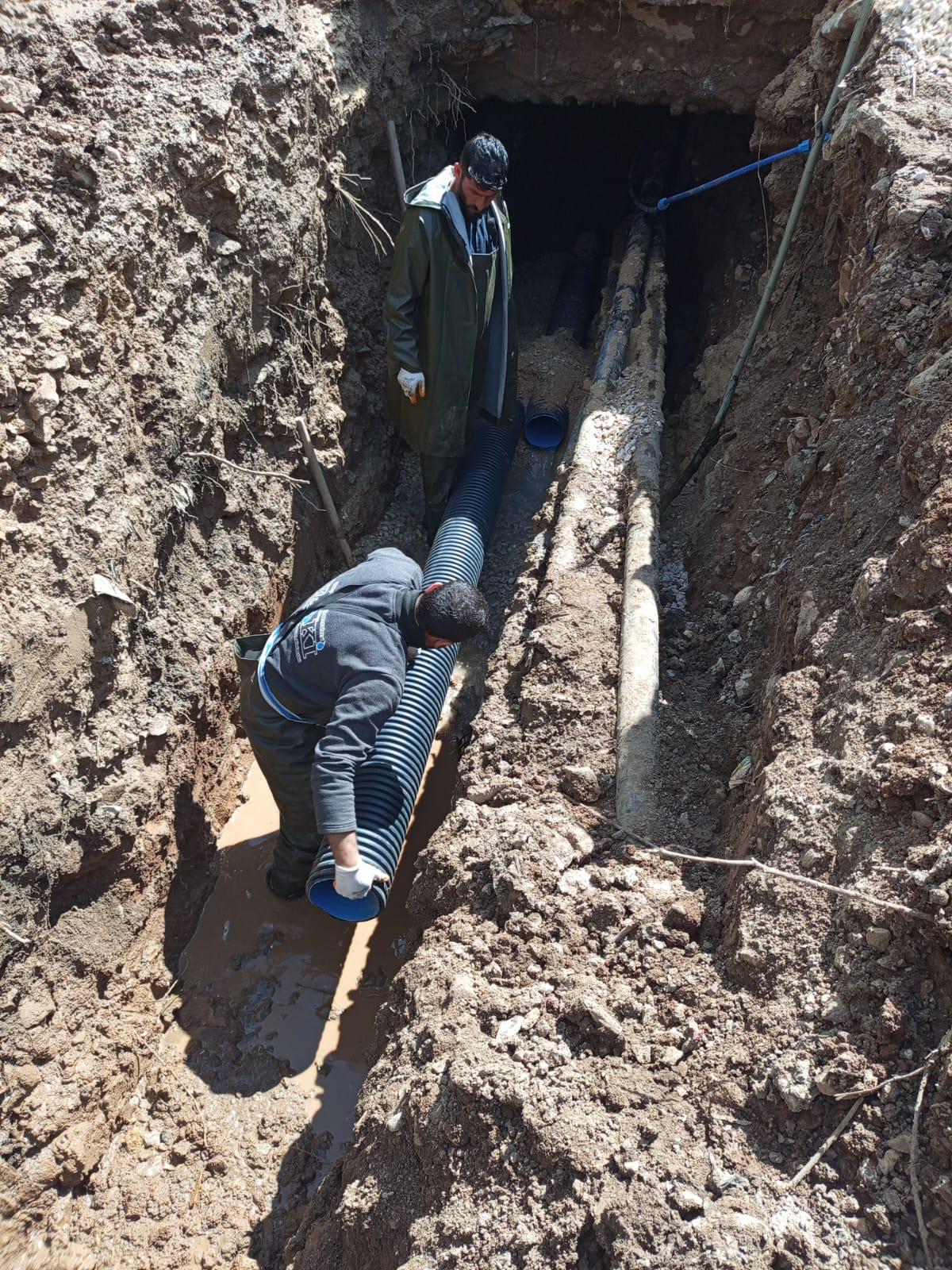 Sahada yürütülen çalışmalar kapsamında zarar gören kanalizasyon borusu deplase edilerek hat yeniden düzenlendi. Yapılan müdahalenin ardından tıkanıklık tamamen giderildi ve kanalizasyon hattı yeniden aktif hale getirildi.